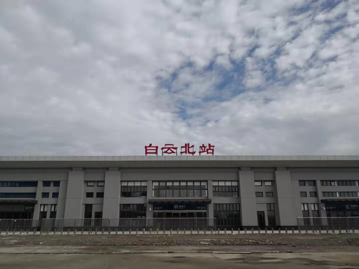 白云北站位于贵阳市白云区,站房最大聚集人数400人。站房候车室为钢筋混凝土框架结构,混凝土屋面;两侧设备用房为钢筋混凝土框架结构,混凝土屋面。