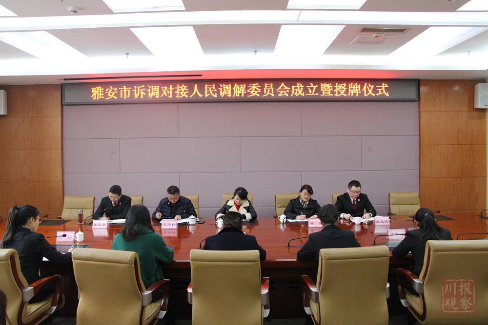 12月4日,雅安市诉调对接人民调解委员会(以下简称诉调委)成立暨授牌仪式在雅安市中级人民法院进行,至此,雅安市及各县(区)均完成了诉调委的全覆盖,“调解组织建在法院”工程取得了阶段性成绩。