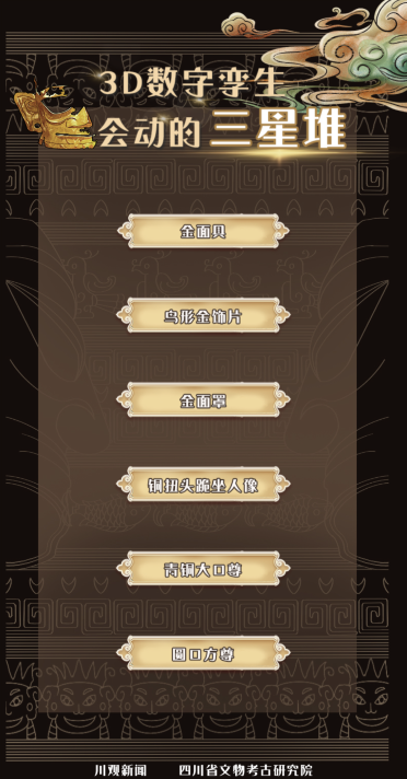 川观新闻、四川省文物考古研究院和三星堆考古研究所联合发布3D数字孪生互动融媒产品——会动的三星堆,超高精度数字化还原新出土文物。