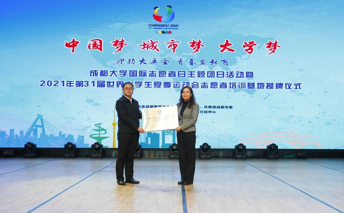 12月5日是第34个国际志愿者日。当天,大运会成都筹委会办公室、成都大学、成都团市委共同举办了“中国梦、城市梦、大学梦”成都大学国际志愿者日主题团日暨成都2019年第31届世界大学生夏季运动会志愿者培训基地授牌仪式。来自55所在蓉高校的师生代表、大运会骨干志愿者代表参加活动。
