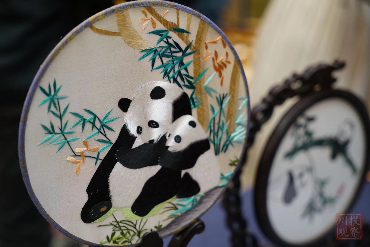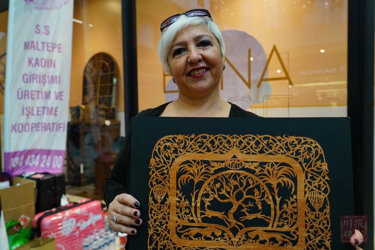 活动现场游人如织。不仅熊猫图案的蜀绣大受欢迎,成都漆器传承人尹利萍、道明竹编传承人杨隆梅现场展示技艺,也看得观众津津有味。与此同时,土耳其非遗传承人也同台亮相,带来了湿拓、剪纸、木画、银丝编织、银钩工艺品等特色手工艺。最特别的是:土耳其非遗湿拓的传承人李昕桐来自中国,她是惟一一位外籍传承人。除了向中国朋友介绍土耳其朋友非遗,她还忙着向土耳其朋友介绍四川非遗,中文和西语无缝对接。