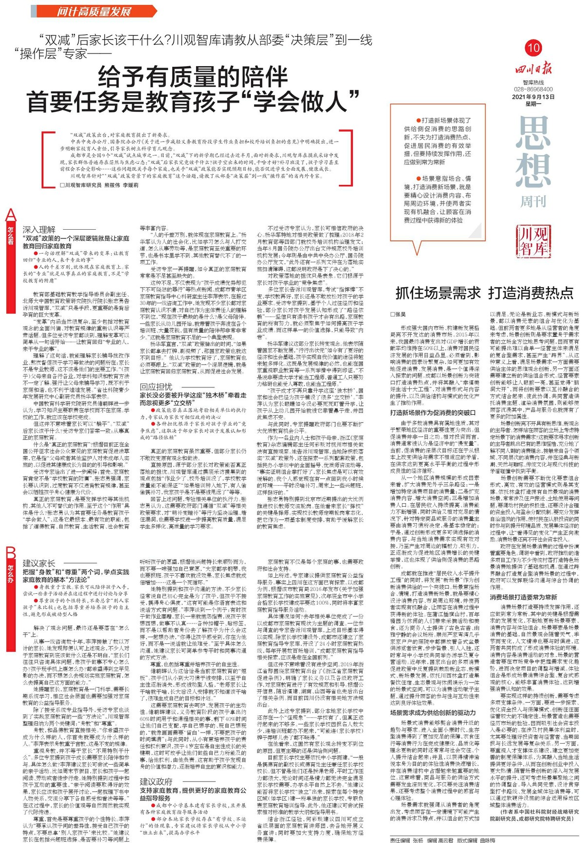 “双减”后家长该干什么?川观智库请教从部委“决策层”到一线“操作层”专家:给予有质量的陪伴 首要任务是教育孩子“学会做人”