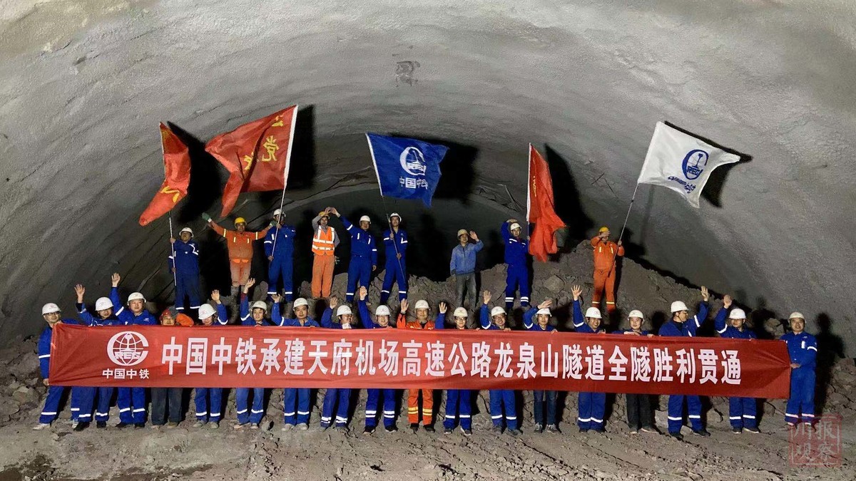 “轰隆!”12月10日11时许,成都龙泉山深处传来一声炮响。随着最后一层岩石被打穿,成都天府国际机场高速公路龙泉山1号隧道K线洞贯通,这意味着总长18445米的龙泉山1号、2号隧道的8洞全部贯通,机场高速公路全线控制性工程被攻克,为全线通车奠定坚实的基础。