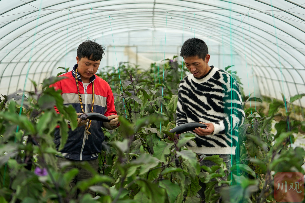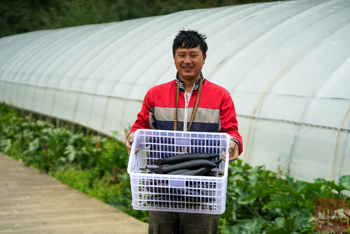“快来抬茄子,装不下了!”9月9日,德格县龚垭乡更达村一组,30岁的阿龙大声召唤着表弟沈杰。一片蔬菜大棚外的小三轮车上,整齐摆放着刚刚采摘下来的豇豆、蕃茄等新鲜蔬菜,待满车后运送到县城菜市场。
