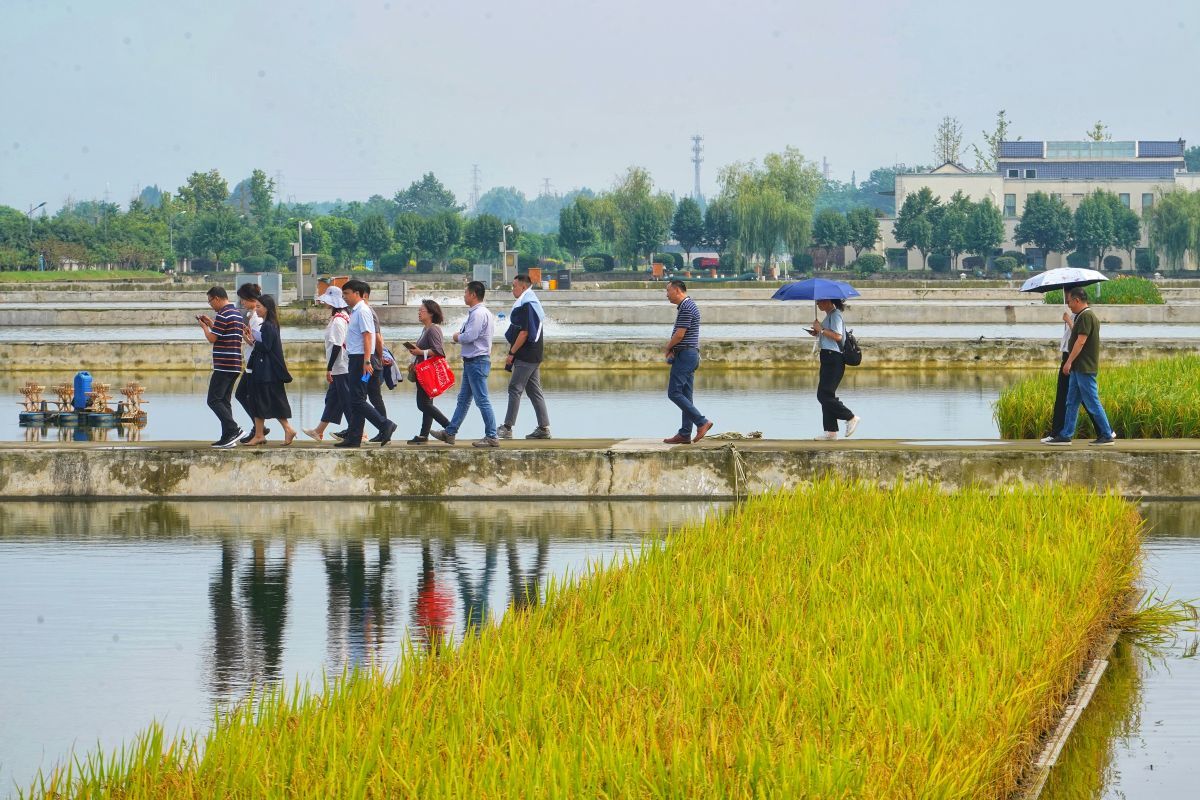 9月13日,走进四川省长吻鮠原种场,入眼是一片片开阔的鱼塘,塘内清波荡漾,偶现鱼儿翻腾。