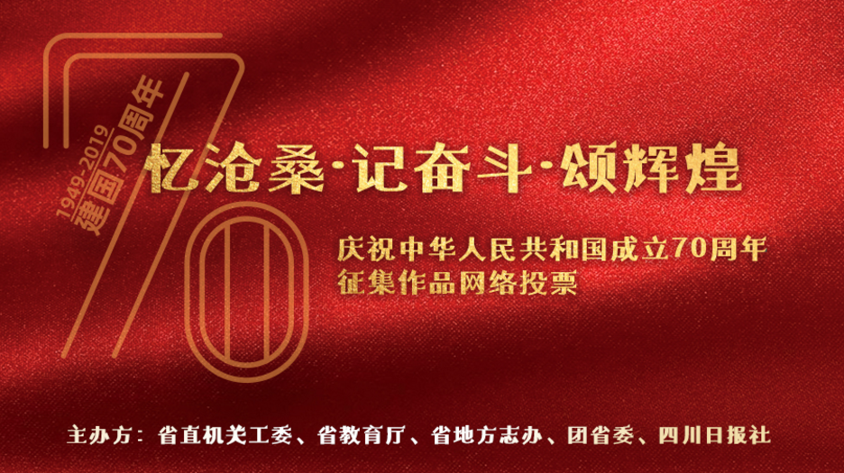 由中共四川省直属机关工作委员会、四川省教育厅、四川省地方志工作办公室、共青团四川省委、四川日报社共同主办的“忆沧桑·记奋斗·颂辉煌——庆祝中华人民共和国成立70周年”文字和影像作品征集活动,自今日(12月12日)起至18日,正式进入为期一周的网络投票阶段。