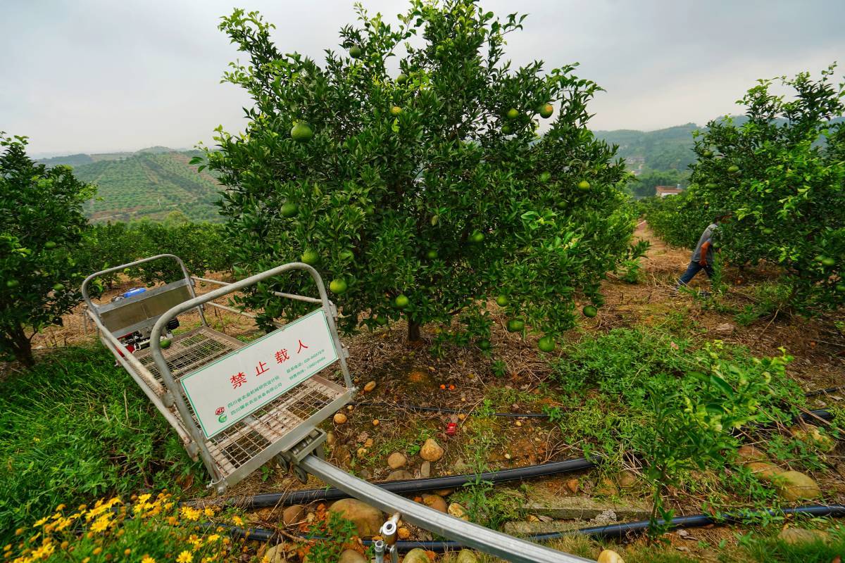 在四川,广大的丘陵地区种植着漫山遍野的柑橘。然而,每到采果季,坡地造成的人工消耗和运输麻烦让不少果农叫苦不迭。