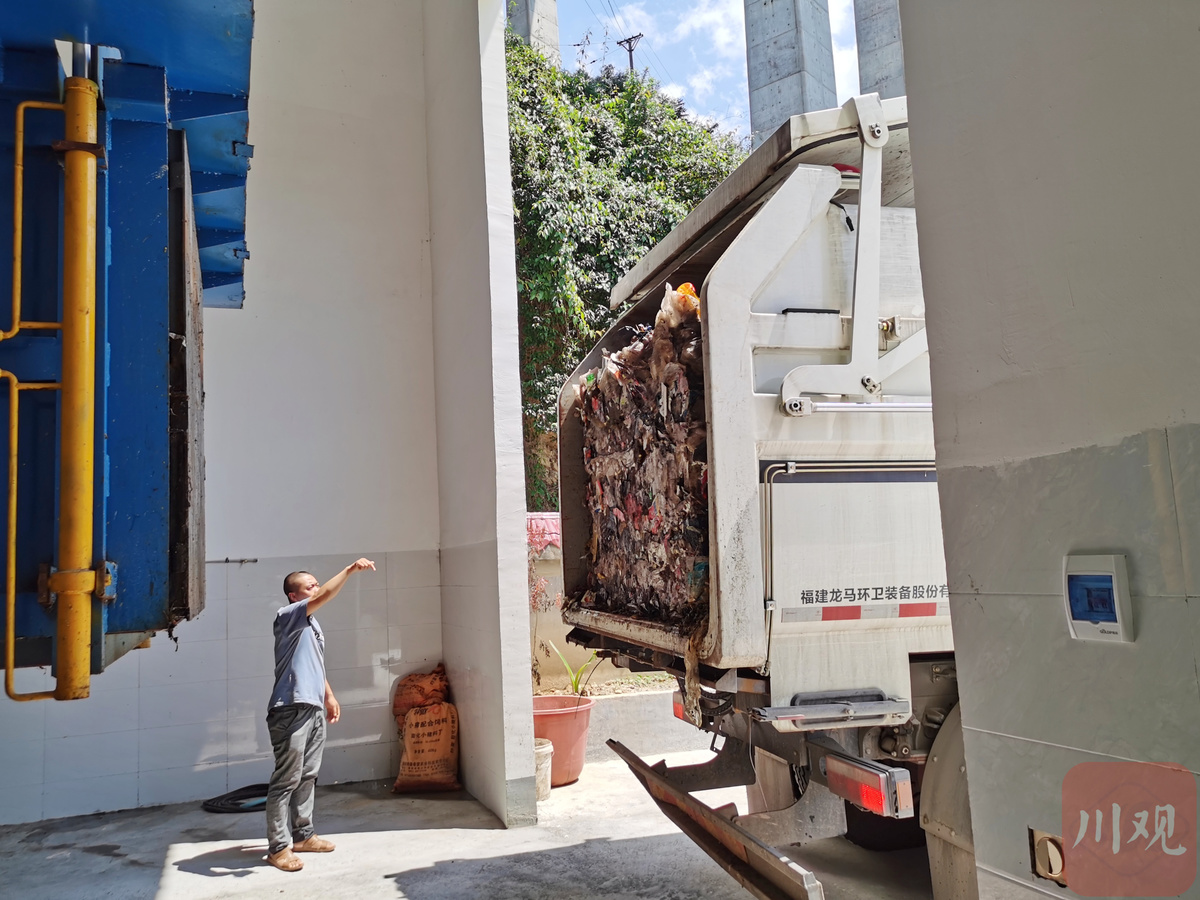 下午一点半,一辆垃圾清运车驶进位于赤水镇斜口村的赤水河生活垃圾压缩站。10几分钟后,便满载12方生活垃圾驶出,运往古叙生活垃圾焚烧发电厂。