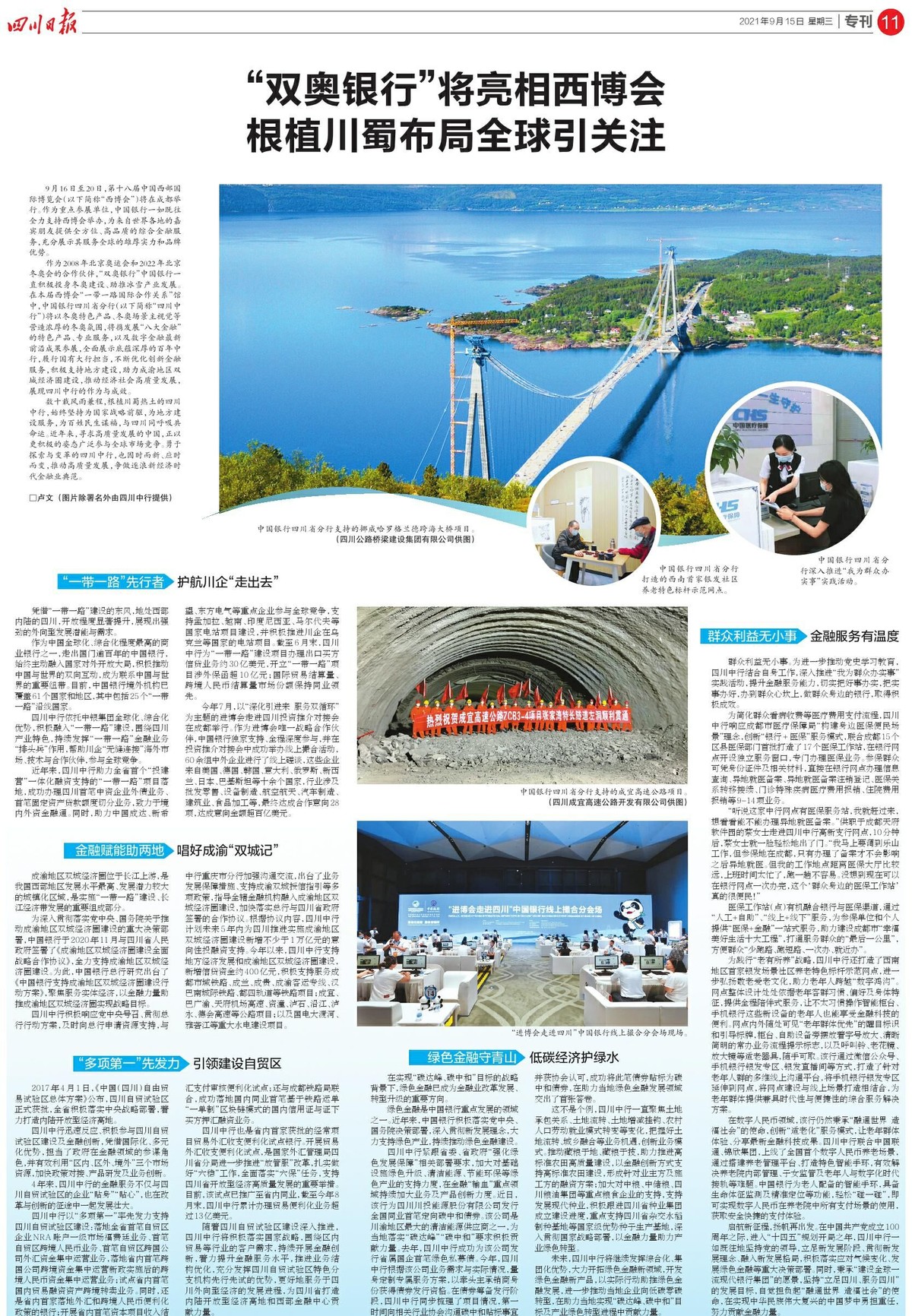 四川中行依托中银集团全球化、综合化优势,积极融入“一带一路”建设,围绕四川产业特色,持续发挥“一带一路”金融业务“排头兵”作用,帮助川企“无缝连接”海外市场、技术与合作伙伴,参与全球竞争。