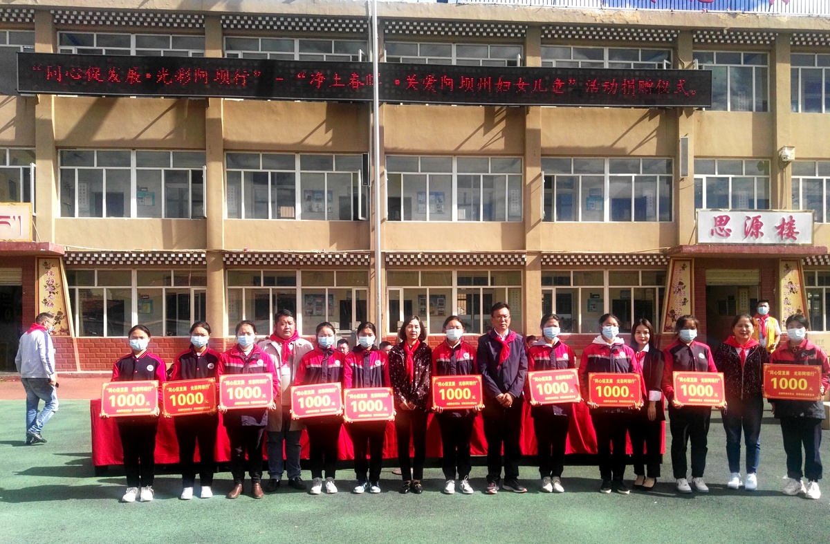 活动当天,爱心企业和公益组织、“净土春晖”巾帼志愿宣讲队分别来到阿坝县阿坝镇第二小学、若尔盖县寄宿制小学开展助学和女童健康关爱活动。成都阿坝州商会、四川欧美同学会留美分会、四川同心同德服务队等爱心企业和公益组织向学校捐赠爱心物资和一批女童卫生用品。