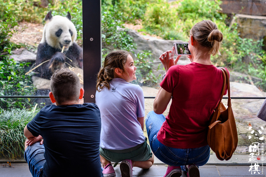 ● 周孟棋在熊猫馆抓拍旅澳大熊猫。