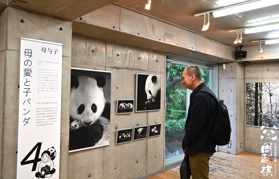 ● 在日本的外国观众在观看周孟棋的大熊猫展。