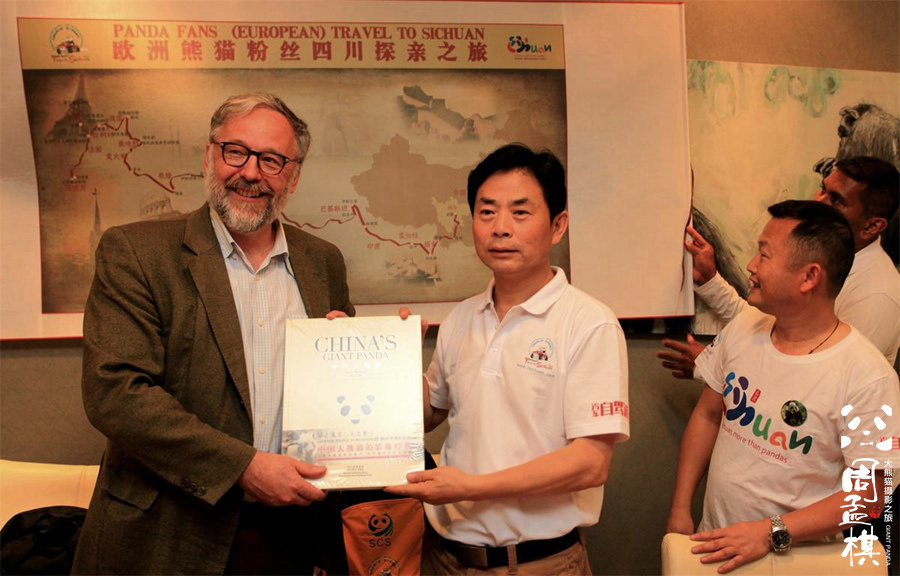 ● 周孟棋向爱丁堡动物园园长赠送中国大熊猫画册。
