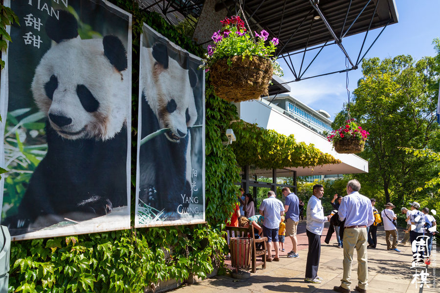 ● 英国爱丁堡动物园展示的旅英大熊猫甜甜、阳光的巨幅照片。