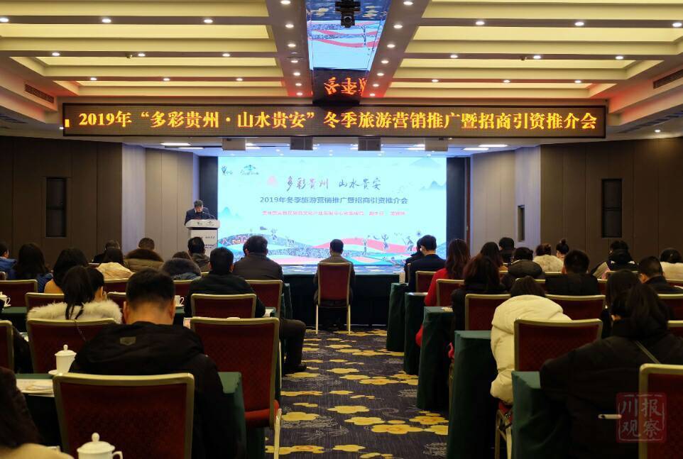 12月13日,2019年“多彩贵州·山水贵安”冬季旅游营销推广暨招商引资推介会在乐山举行。推介会上,贵安新区代表贵州省向四川人民发出旅游“邀请函”,诚邀四川朋友到贵州以及贵安新区做客, 贵州省200多家A级旅游景区推出了景区门票五折的优惠政策。