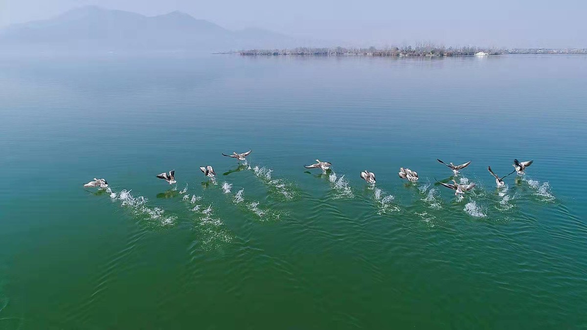 碧波荡漾的邛海,不仅是人们体验自然风情的好去处,更是鸟类栖息嬉戏的天堂。随着邛海湿地一至六期恢复工程的实施,邛海沿岸恢复了30多公里的生态自然岸线,官坝河、小青河、鹅掌河河口生态环境逐步得以修复,为候鸟越冬提供了良好的栖息地。如今,这里鸟类的种群和数量也在年年攀升。