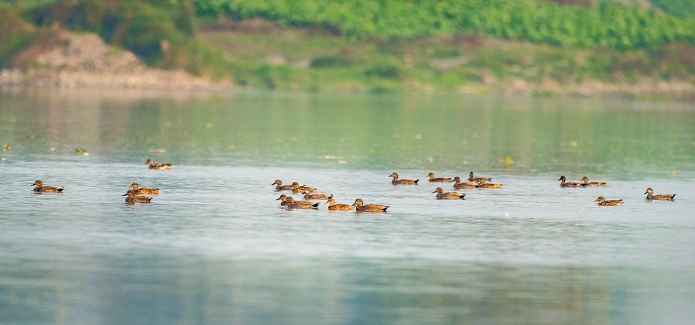 “这是来自西伯利亚的候鸟,学名赤膀鸭,它们在每年冬季都会迁入温暖的南方越冬,这是在青神第三次拍到它们。”何刚介绍道。