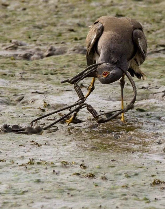几年前的初春,在岷江边采风的杨彦刚,发现江边滩涂地里,一只灰头麦鸡在垂死挣扎。走进一看,一只锈迹斑斑的铁夹死死卡主了灰头麦鸡的脖子,危在旦夕之际,灰头麦鸡流露出了绝望的眼神。