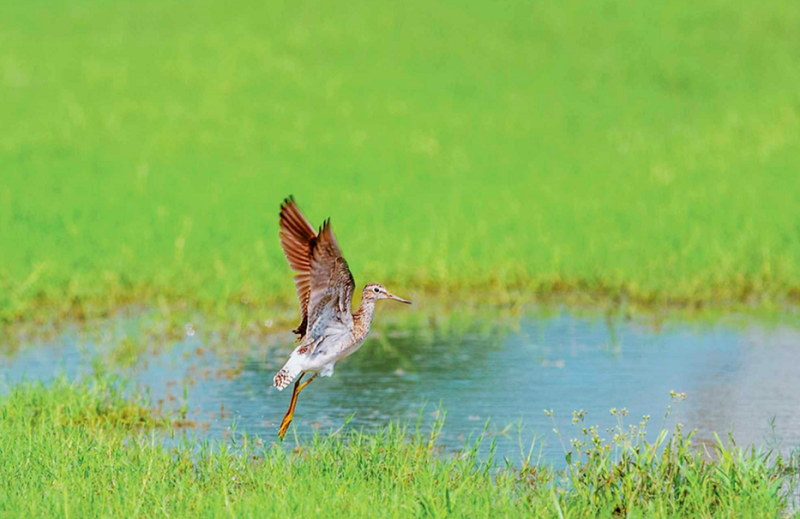 这里距离岷江几公里,村里有一片湿地,是迁徙鸟类集中地,发现有长趾滨鹬、林鹬和矶鹬等鸟类。