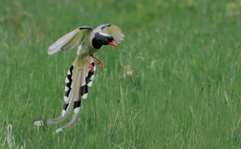 留鸟,俗名山楂耳、山喜鹊,体长53-65厘米,体重150-210克,雌雄羽色相似。它是鸦科鸟类中的靓女,是画家们笔下的爱物,它们性喜群栖,经常成对或3-5只或10余只的小群活动,主要以昆虫等动物性食物为食,也吃植物果实、种子和玉米、小麦等农作物,食性较杂,筑巢于树木侧枝上,每窝产卵4-5枚,雌雄轮流孵卵。它被列入了世界自然保护联盟2016年濒危物种红色名录无危类和《国家保护的有益的或者有重要经济、科学研究价值的陆生野生动物名录》。