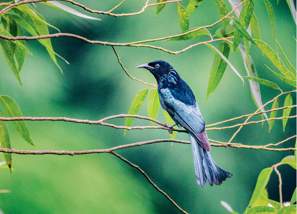 夏侯鸟,俗名发形凤头卷尾、卷尾燕、山黎鸡,体长28-35厘米。林栖鸟类,喜成群活动,主要在树冠层活动和觅食,以蝗虫、蜂、蚂蚁、蜻蜓、蝉等各种昆虫为食,偶尔也吃少量植物果实、种子等植物性食物。每窝产卵3-4枚,雌雄轮流孵化和共同育雏。它被列入了世界自然保护联盟2012年濒危物种红色名录低危类和《国家保护的有益的或者有重要经济、科学研究的陆生野生动物名录》。