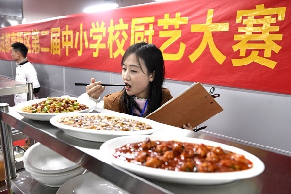 “我们不仅让老师、孩子们吃饱,还要让他们吃好、吃的营养健康,在此基础上还要吃出文化来。我们给孩子做面摊的时候,会用到猪头、兔头的道具,用五谷杂粮做出不一样的颜色,让视觉冲击孩子们的味觉。学校引导的好,家长也高兴。”相关负责人向记者介绍,此次比赛从菜品的色、香、味、形、质感、创新程度以及厨师个人卫生、操作熟练程度等方面对参赛作品进行综合评分。此次活动不仅为学校食堂的厨师们提供了展示厨艺、相互学习的机会,也让他们的烹饪技能得到了提升。