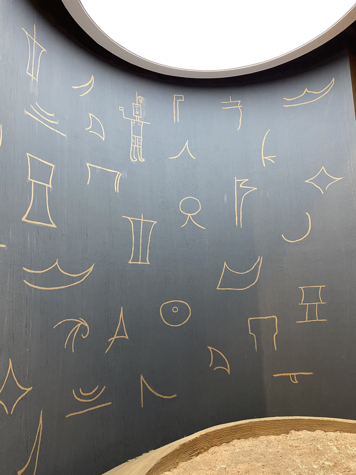 这些陶缸均为夹粗砂红陶,器形以宽折沿深腹小平底缸为主,上面刻划着不同符号,有些类似于镰刀、号角、杯子,或许这正是文字起源之前,人们以此来传递某种讯息。