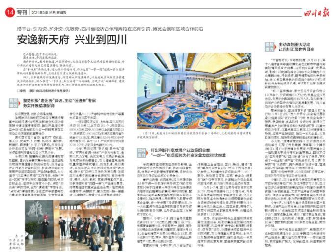擦亮“安逸新天府、兴业到四川”招商名片,四川对外交流合作活动好戏连连。