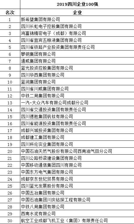 12月17日,2019四川企业100强发布会在成都召开,会上2019四川企业100强新鲜出炉,新希望集团有限公司、四川长虹电子控股集团有限公司和鸿富锦精密电子(成都)有限公司名列前三甲。