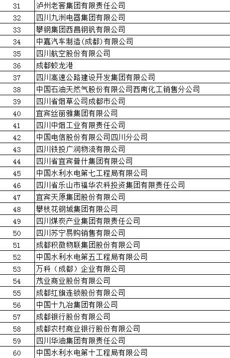 对标全国,记者注意到,榜单中的新希望集团、长虹集团、通威集团、铁投、交投等14家企业入围中国500强,13家企业入围中国制造业500强,9家企业入围中国服务业500强。
