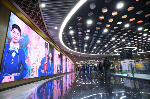 未来,市民在地铁5号线青羊宫站乘车时,不仅可以看到一块超大LED显示屏上播放的融合了成都城市风光的水墨动画,还能欣赏到车站顶上不断变幻的灯光秀,既有浓浓的中国风,又现代科技感十足。