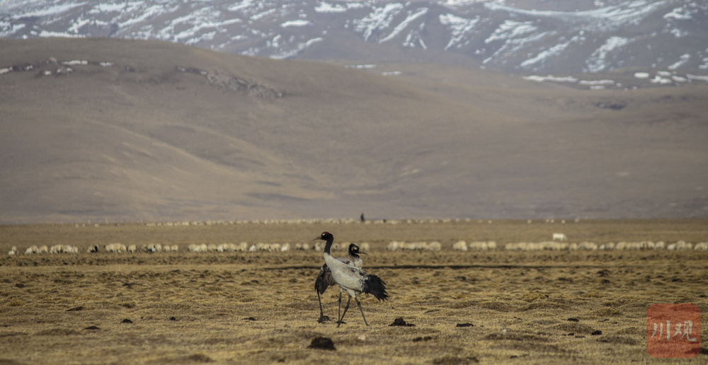 越冬归来的黑颈鹤在若尔盖家园栖息