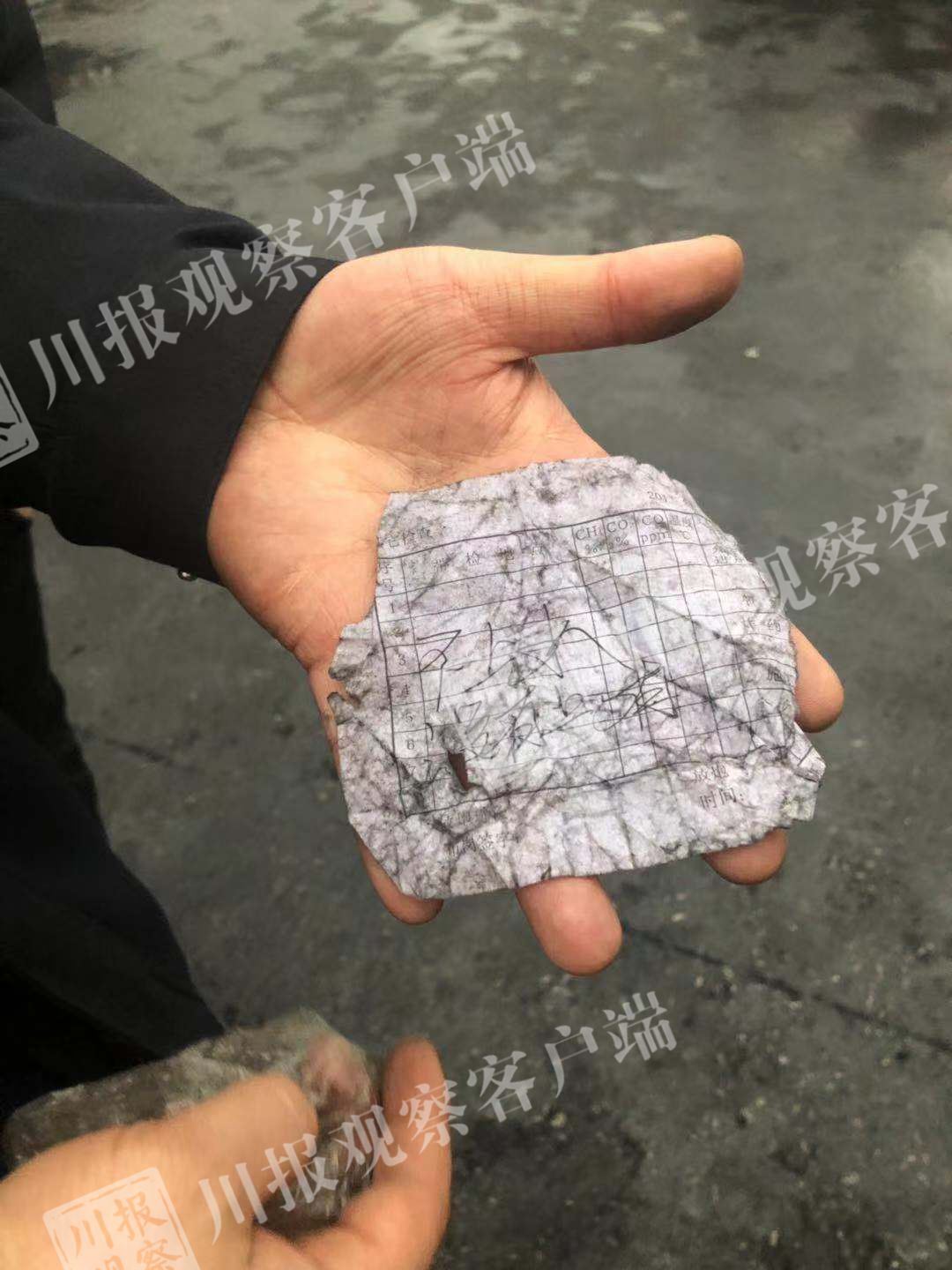 随着水位继续降低,邓斌发现一个塑料管包裹的纸条,绑缠在一根细长的PVC管道上,顺着水流漂了出来。他赶紧拿起来解开一看,纸条上歪歪扭扭写着几个字,仔细辨别,像是“没有上水”。