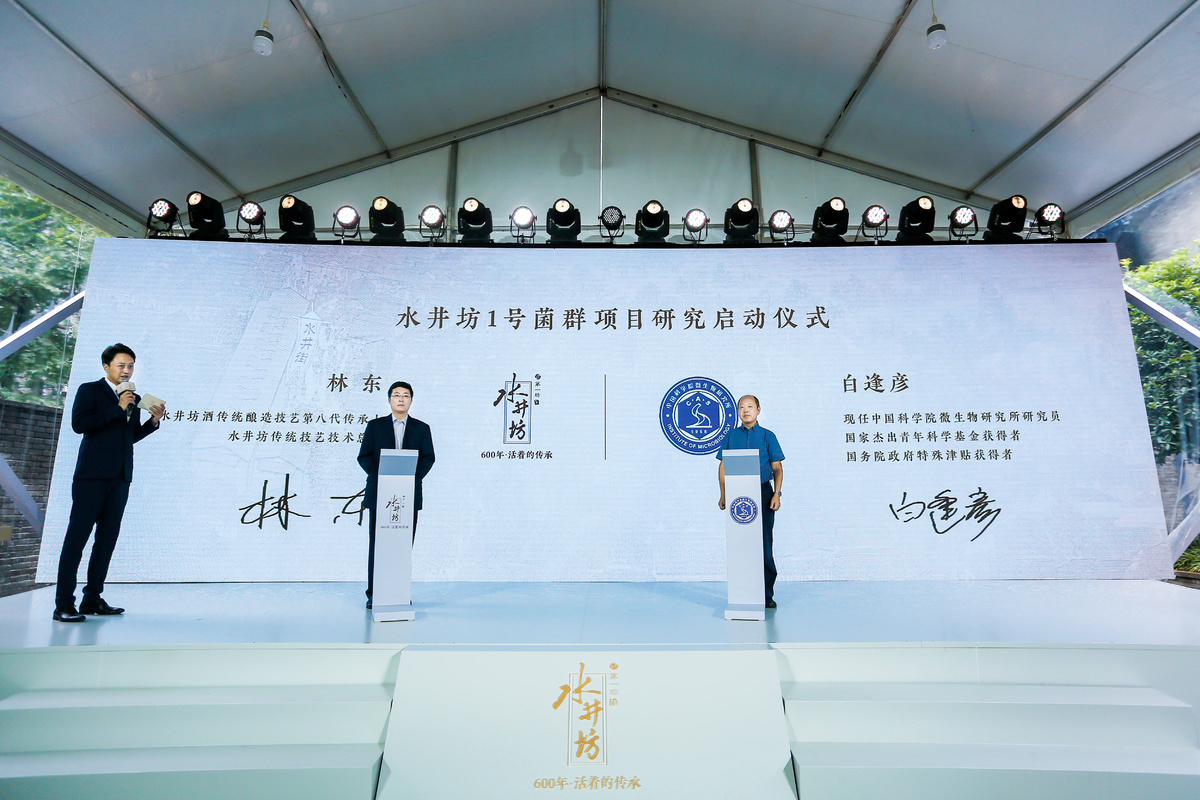 9月17日上午,水井坊1号菌群项目研究启动仪式在成都水井坊博物馆内举行。中国食品工业协会党委书记、副会长兼秘书长马勇,中国酒类流通协会会长王新国,中科院微生物研究所真菌学国家重点实验室研究员白逢彦,水井坊传统技艺生产总监、水井坊酒传统酿造技艺第八代传承人林东,白酒专家胡永松、吴亚东、杨官荣在内的近50位业界人士,围绕“1号菌群”为代表的水井坊600年古菌群与酒体品质的关联,与项目研究价值,展开了一场以“探传承之密,话时间之美”为主题的对话。