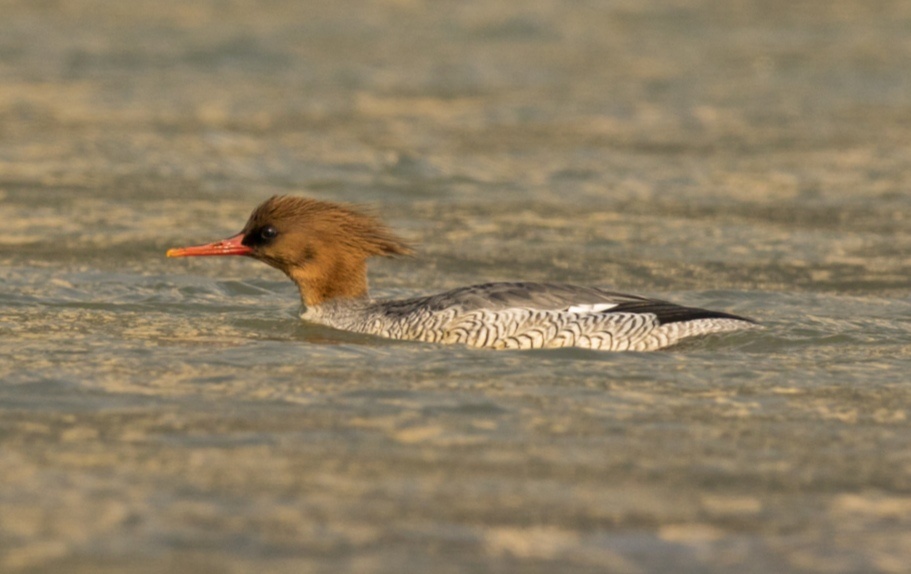 12月13日前后,青衣江上发现了几只中华秋沙鸭,棕色的羽冠,有金属光泽。中华秋沙鸭是我国特产稀有鸟类,属国家一级重点保护动物。
