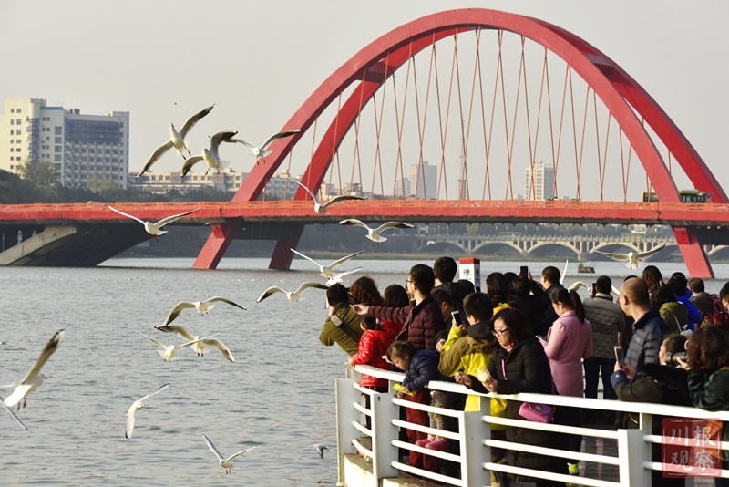 “稀客”来了,“老相识”也以“大部队”形式高调归来。在德阳旌湖、乐山市区岷江段、泸州东门口、宜宾三江口、绵阳三江湖等地,从西伯利亚远道而来的红嘴鸥大规模在江面嬉戏,吸引了大量市民围观。