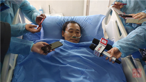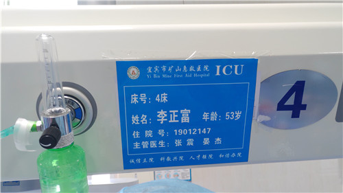 2019年12月19日9点过,在收治6名被困矿工的宜宾市矿山急救医院,记者在ICU病房里见到躺在病床上休息的矿工刘贵华。