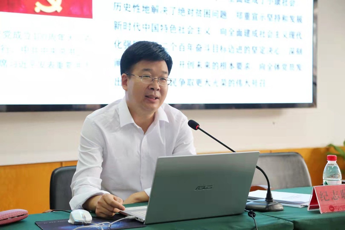 纪志耿紧紧围绕习近平总书记“七一”重要讲话精神,深入阐释了“七一”重要讲话的重大意义、根本要求、伟大号召,用鲜活的事例和接地气的语言全面解读了全面建成小康社会的历史性成就、党团结带领人民不懈奋斗的光辉历程和伟大成就、伟大建党精神的深刻内涵和时代价值,对把学习贯彻习近平总书记重要讲话精神作为一项重要的政治任务抓紧抓好进行了系统讲解。