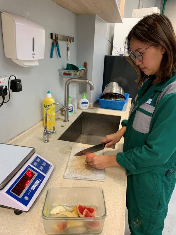 澳门“奶妈”周淑怡正在准备大熊猫喜爱的苹果(澳门石排湾郊野公园供图)