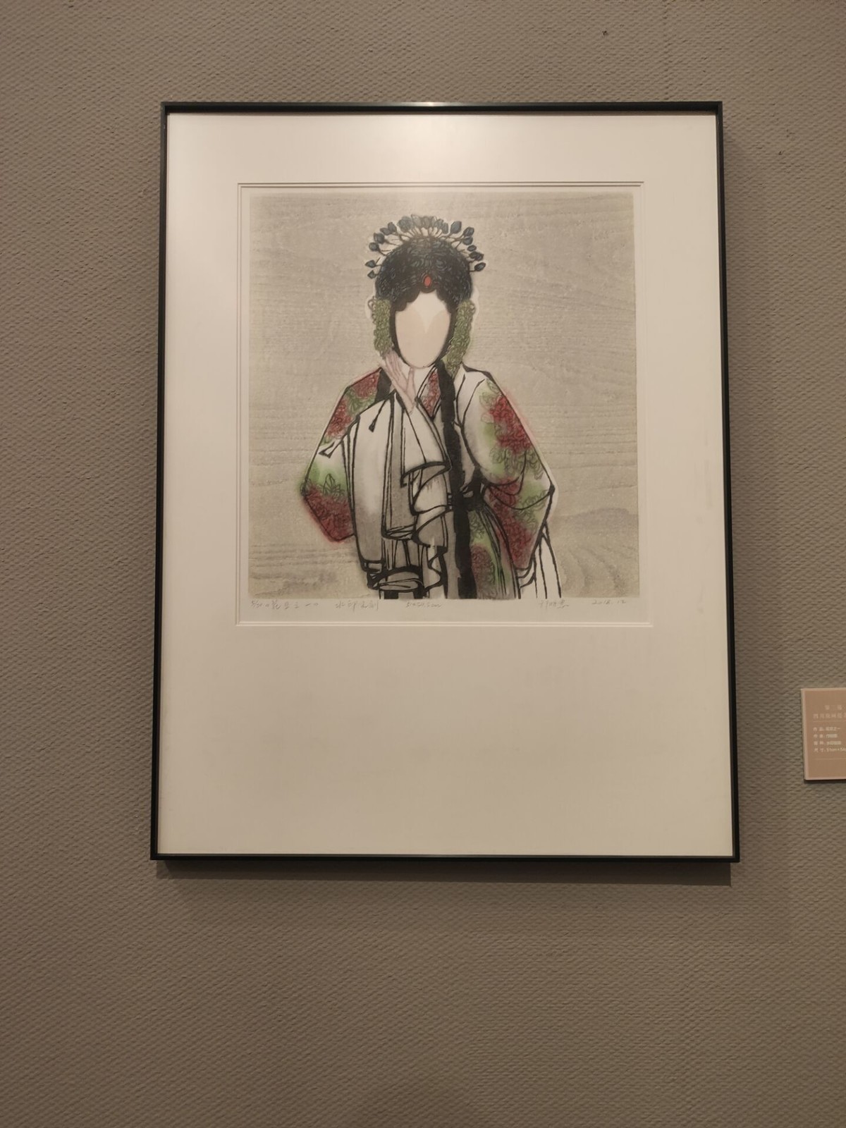 四川省美协版画艺委会秘书长邝明惠也是探索者之一。在省美术馆二楼展厅进门不远处,是他的水印版画《花旦之一》。素雅的颜色里,一名花旦身姿优雅。此次创作延续邝明惠作品简约和喜留白的特点。画家省略花旦的五官表情,让观者仅凭画中人物的服饰和动作,来揣摩人物的表情。