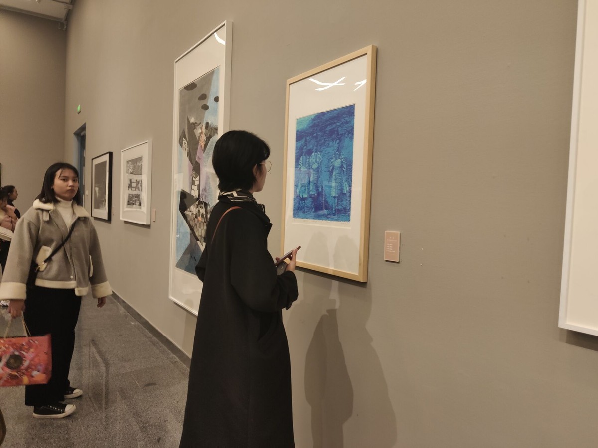 此次版画展是由四川省美术家协会、四川美术馆、四川师范大学美术学院以及西南民族大学艺术学院联办,除了专职画家,一批青年学生的版画作品也在其中展览。四川师范大学美术学院版画教研室主任蔡丽辉介绍,他们鼓励学生用版画进行创作,并且不断尝试扩宽版画边界,“比如将版画和摄影、装置作品结合,不断来探索新的版画语言。”