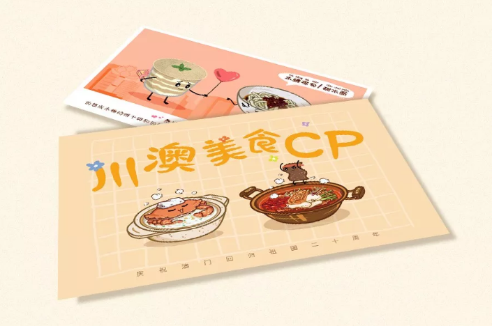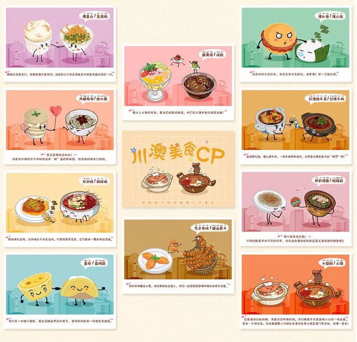 手绘川澳美食CP明信片1套