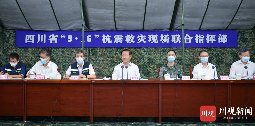 11时许,彭清华在抗震救灾现场联合指挥部主持召开专题会议,研究抗震救灾工作。会议开始前,与会人员全体起立、向地震中遇难同胞默哀。会议听取了泸州市、应急管理厅负责同志关于灾情、抢险救灾工作等情况汇报,应急管理部工作组负责同志对做好下一步工作提出了要求。