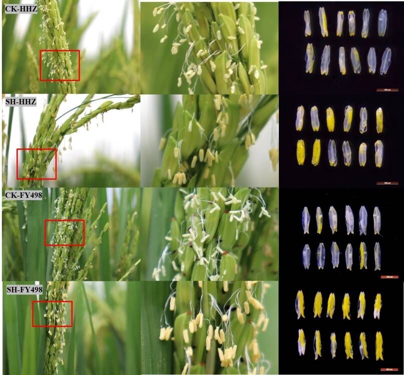 “水稻结实率主要由开花受精及籽粒灌浆充实决定。”任万军说,开花受精率低导致水稻空粒增多,籽粒充实不良则导致瘪粒增多。弱光胁迫下水稻籽粒灌浆受阻,颖果发育滞后,淀粉粒发育不良,导致瘪粒增多,结实率降低。