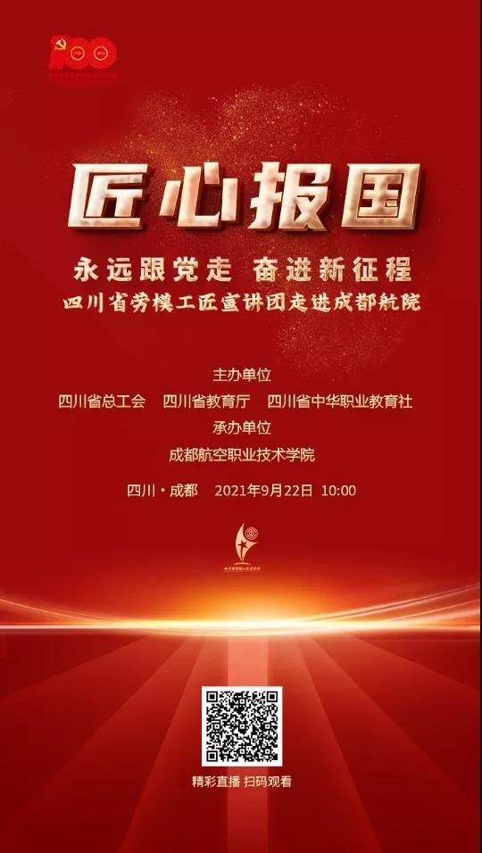 9月18日记者从省总工会获悉,由省总工会、省教育厅和四川省中华职业教育社主办的“匠心报国——永远跟党走 奋进新征程”四川省劳模工匠宣讲团主题宣讲活动将走进成都航空职业技术学院,“英雄机长”刘传健、“焊接玫瑰”唐成凤、飞机心脏的“顶级”服务者刘尚明将携手走上讲台,用亲身经历将讲述他们技能成才、技能报国的感人故事。