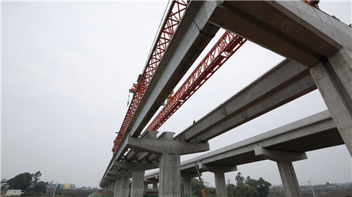 A支线1号特大桥是全线重点工程,全长3031米,桥面宽度16.85米,为双向6车道,设计时速120公里,主梁采用预制小箱梁,桥墩采用大悬臂盖梁独柱式实心墩。由于桥梁穿越村庄,交叉干扰多,作业环境复杂,施工难度大,安全风险高,承担施工任务的中铁建工集团北京路桥分公司项目部超前谋划,精心组织,积极与当地政府沟通,解决了自来水管道铺设和高压线、通信基站迁改等困难,通过优化施工方案,合理配置人力、物资等资源,在全线安装远程监控等措施,保证了桥梁施工顺利完成。桥梁贯通后,项目部将投入桥面系施工,力争早日全面完工。
