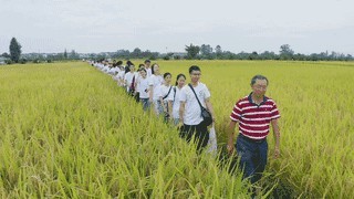 本次实践活动还有一个特殊的环节,由黄富讲述宜香优2115、川康优2115培育的故事。杨峰介绍,这两个水稻品种均是黄富教授选育,目前川康优2115这个新品种在全国农技推广中心组织的2021年全国水稻新品种(286个新品种)展示示范评价活动中,被全国水稻专家评选为优秀新品种,居获评的43个品种首位。“我们希望通过这样的方式,将科学研究和人才培养融合,发挥作物学科的育人优势,培养知农爱农创新型农学类专业本科人才,把科研成果转化为课程内容,走出教室、走进田间,真正了解到农业生产的前沿知识。”
