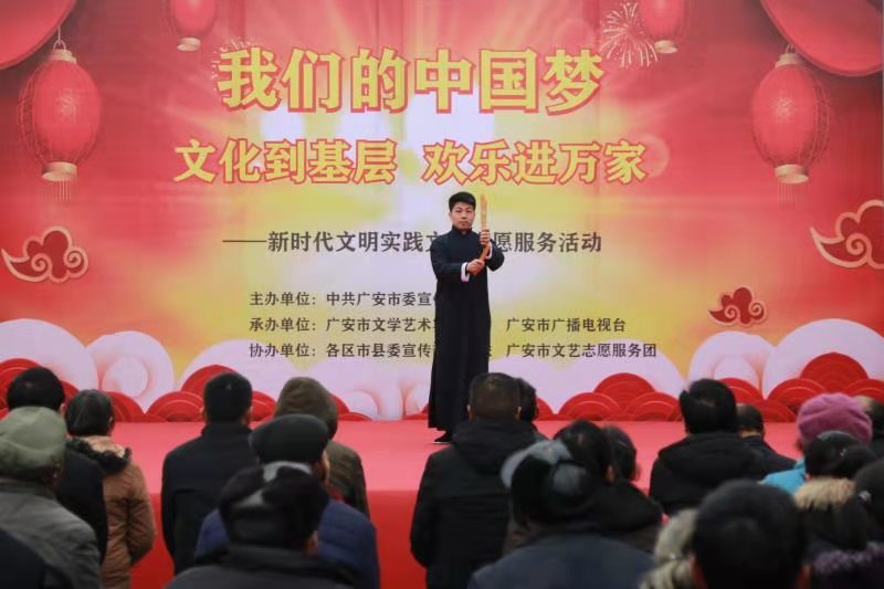 12月24日,“我们的中国梦”文化到基层欢乐进万家——新时代文明实践文化志愿服务活动,广安市文艺志愿服务团的文艺轻骑兵小分队在广安区兴平镇新农村党群服务活动中心拉开帷幕。