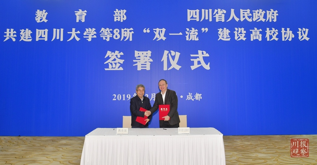 12月26日,教育部与四川省人民政府在成都签署《共建四川大学等8所“双一流”建设高校协议》。省委书记、省人大常委会主任彭清华,省委副书记、省长尹力会见教育部部长陈宝生,并共同出席协议签署仪式。