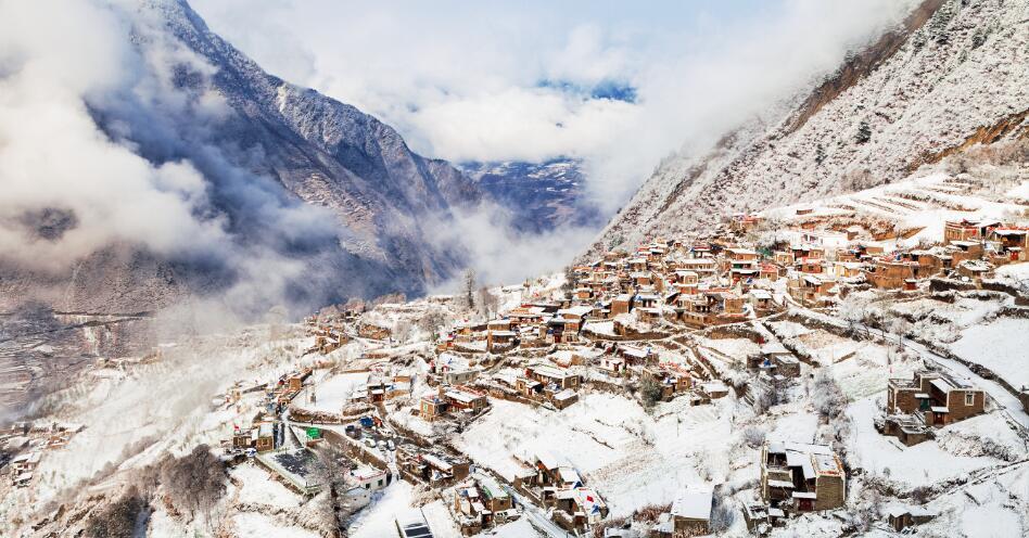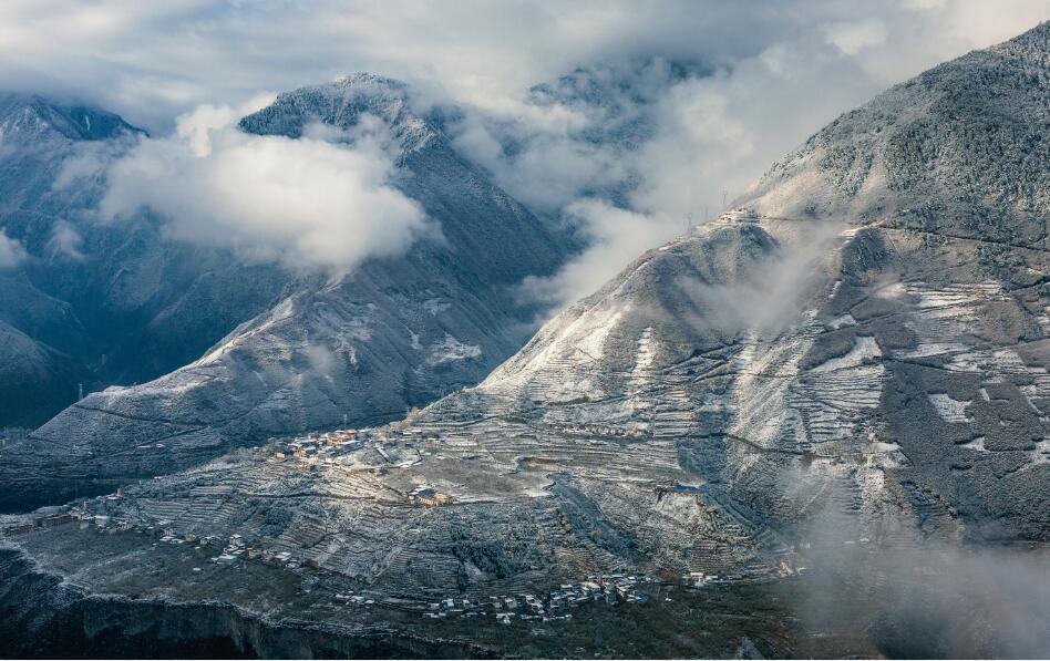 在河坝里,在高半山上,这些寨子大多以石块垒砌而成,或大或小,高高低低、错落有致,与周围茂密的树林、清澈的河流、皑皑的雪峰一起构成一幅幅优美的乡村画卷。寨子是承载乡愁的载体,是这片土地上让人牵肠挂肚、久久不能忘怀的根。